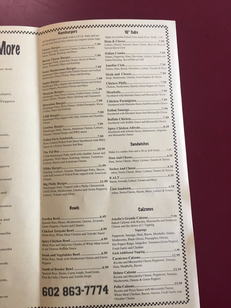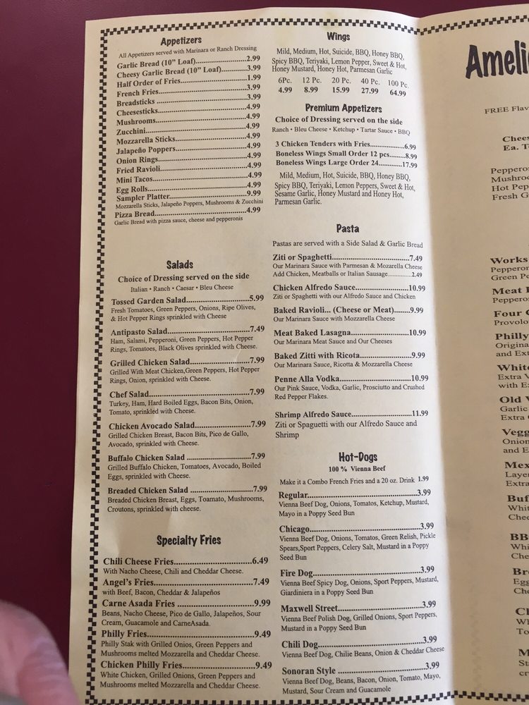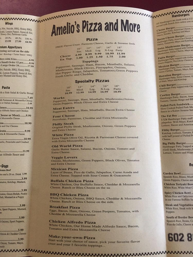 Amelio' s Pizza and More Menu
