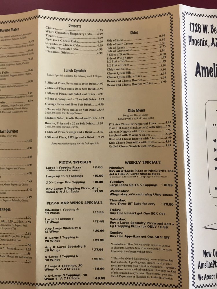 Introducing Amelio's Pizza and More, a delightful pizza haven located at 1726 W Bell Rd, Phoenix, AZ. This family-owned gem offers an exquisite selection of handcrafted pizzas, subs, and delightful desserts that promise to satisfy any craving.